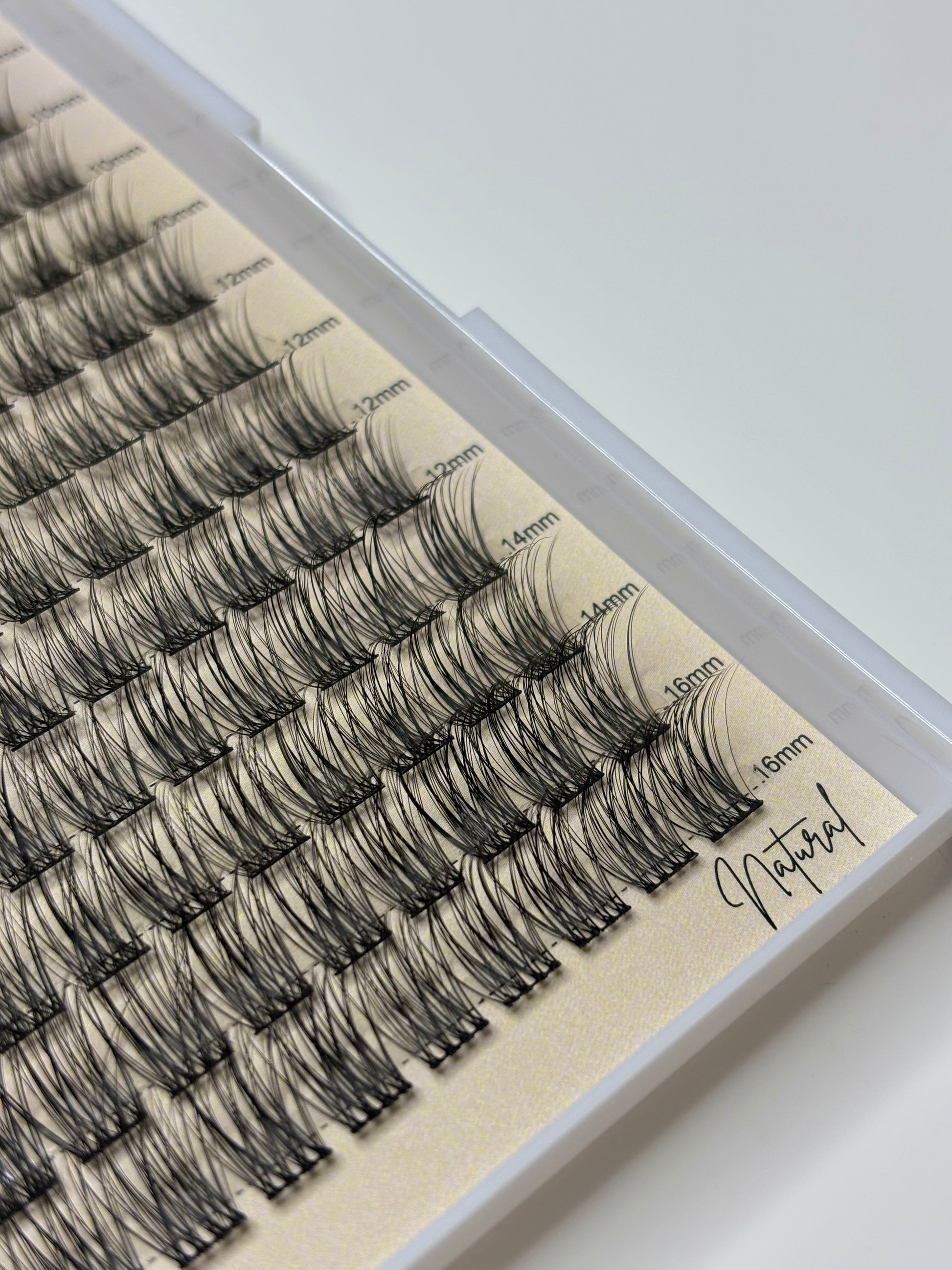 -Cleanse natural lashes to remove make up or oils. This step is crucial for the longevity of the clusters.