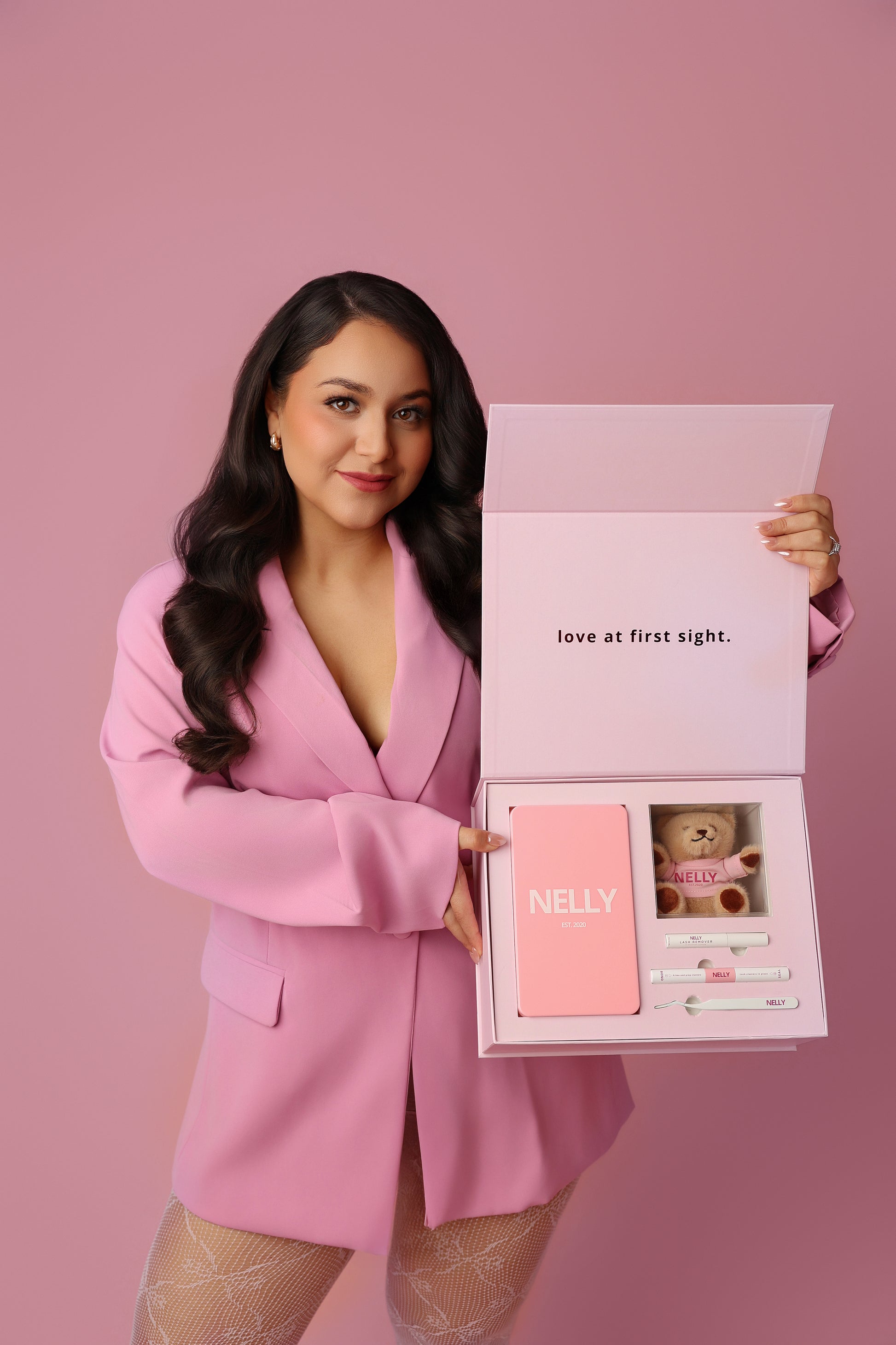 Introducing our Love Collection, thoughtfully designed for those who adore NELLY lash clusters. This curated set features a travel-friendly lash case with all six styles, essential lash tools (bond & seal, remover, applicator), and the iconic NELLY Teddy keychain/purse charm.